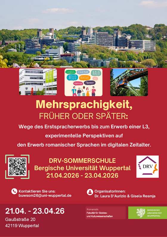 Vom 14. - 16. Mai 2024 fand unsere Tagung unter dem Titel ,,Acquisition Advantages in Multilingual Learners: Theoretically- and Empirically-based Studies of the Multilingual Advantage and it's Use in Society'' an der Bergische Universität Wuppertal statt.