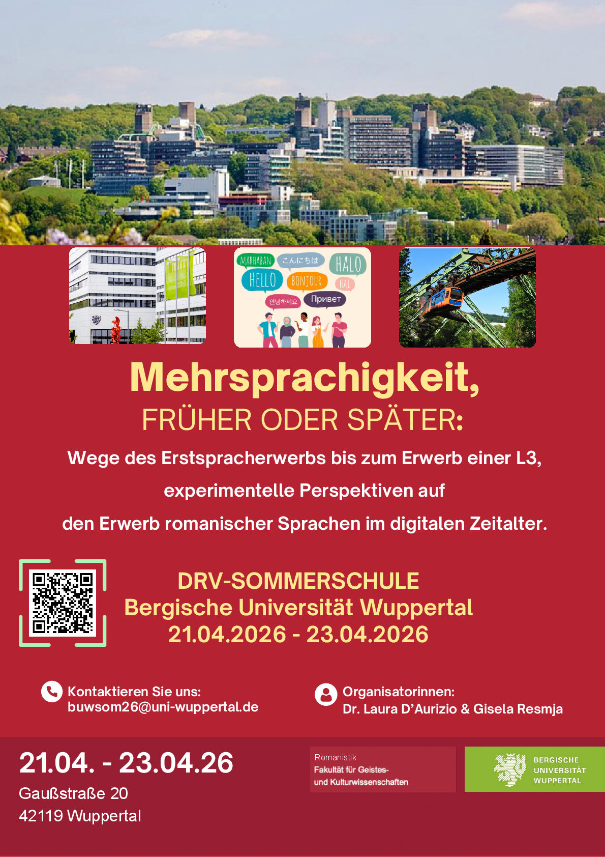 Vom 14. - 16. Mai 2024 fand unsere Tagung unter dem Titel ,,Acquisition Advantages in Multilingual Learners: Theoretically- and Empirically-based Studies of the Multilingual Advantage and it's Use in Society'' an der Bergische Universität Wuppertal statt.