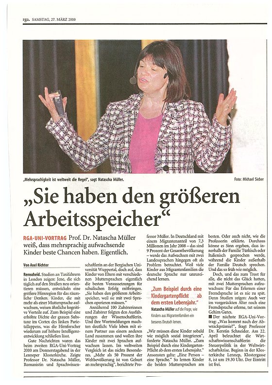 Ein RGA-Uni Vortrag von Frau Prof. Dr. Müller (2010) zur Frage ob mehrsprachige Personen nachweisbar Vorteile bezüglich des Arbeitsgedächtnisses haben.